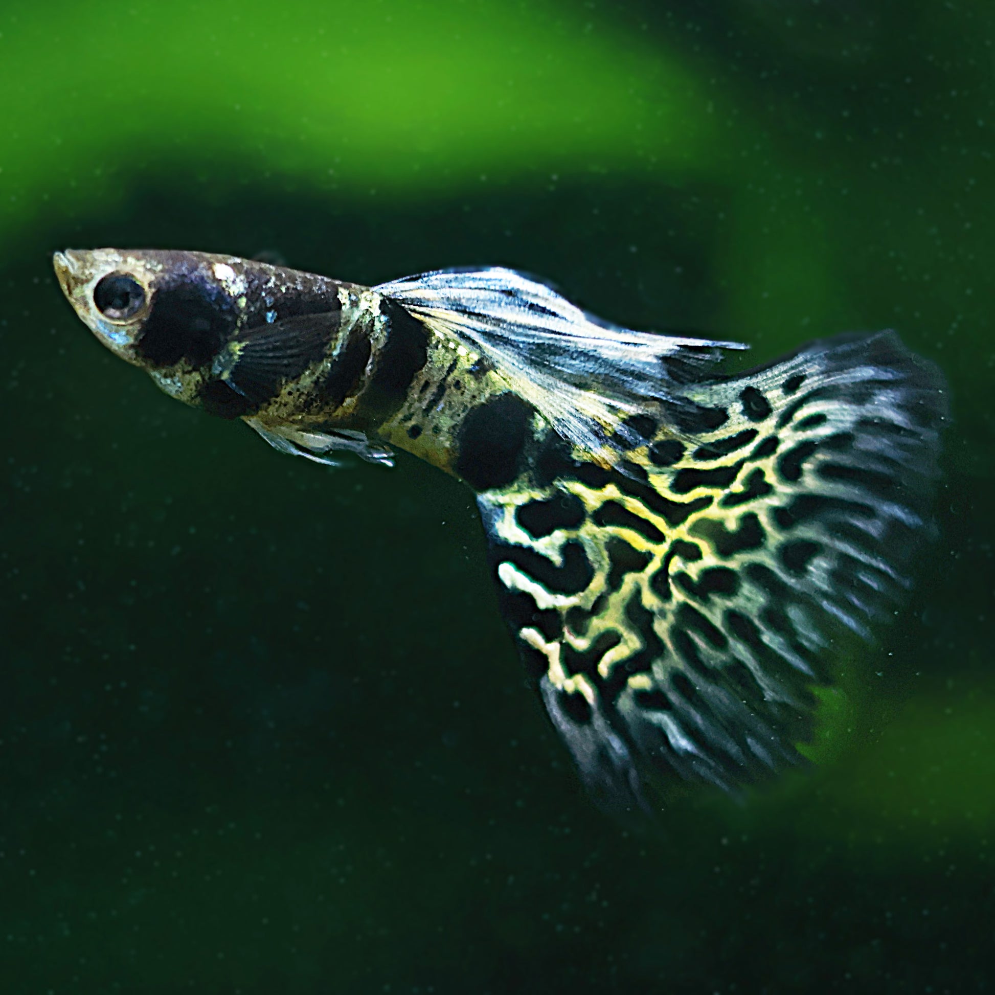 Nous vous proposons ces guppys d’exception, d’une rareté et d’une beauté inégalées : les Blue King Tiger. Leur superbe motif, aux nuances nacrées et contrastées, oscille entre le bleu et blanc avec de subtiles reflets violet. Une véritable merveille de la nature.